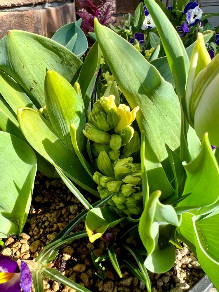昨年11月中旬植えて、雪を被り寒さを味わい、今やっとここまで芽が出て、花が開こうとしています✨✨