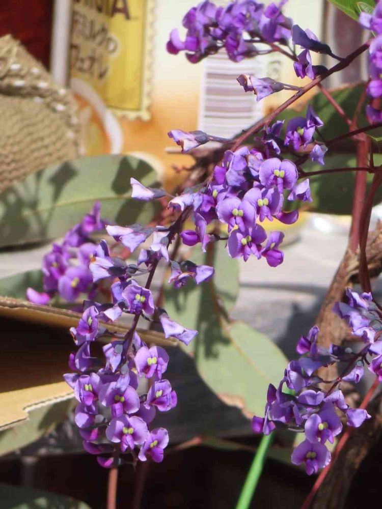 調べるとマメ科の半耐寒性常緑蔓性低木でハーデンベルギア(別名コマチフジ(小町藤))とのこと。