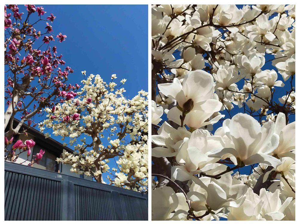 隣りの紫木蓮と一緒にきれいに咲いていました。