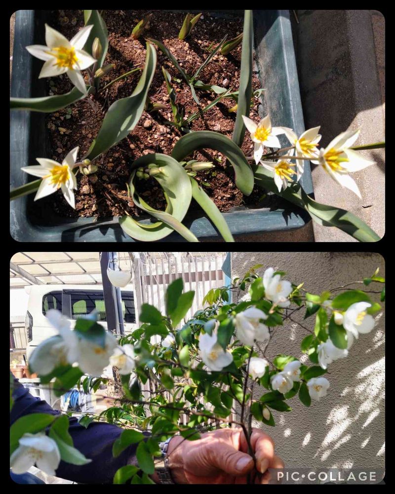 こんにちは☀️穏やかな暖かい日☀️🌸です。午後のpicです。連日の☀️で、庭のミニチュ―リップ🤍🌷🤍🤍🤍が、開いて咲いてます。また