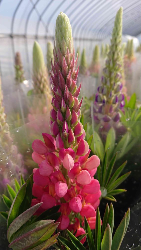 真っ直ぐなルピナスが沢山咲いてるハウス