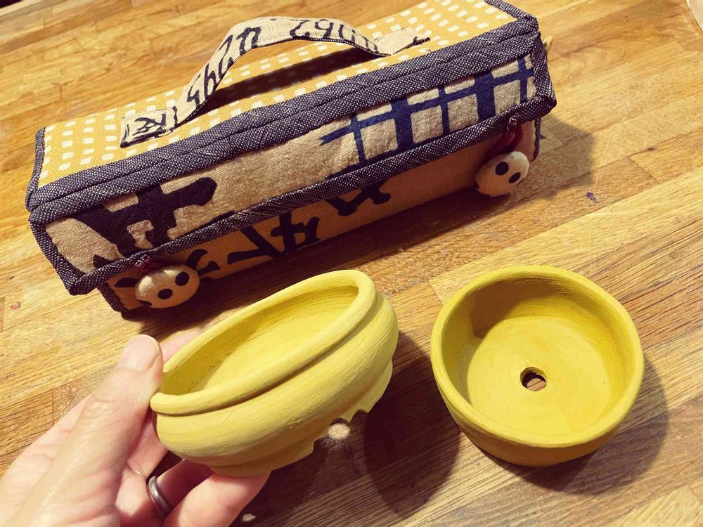 柿渋染めの手ぬぐいで陶芸用品のバッグを