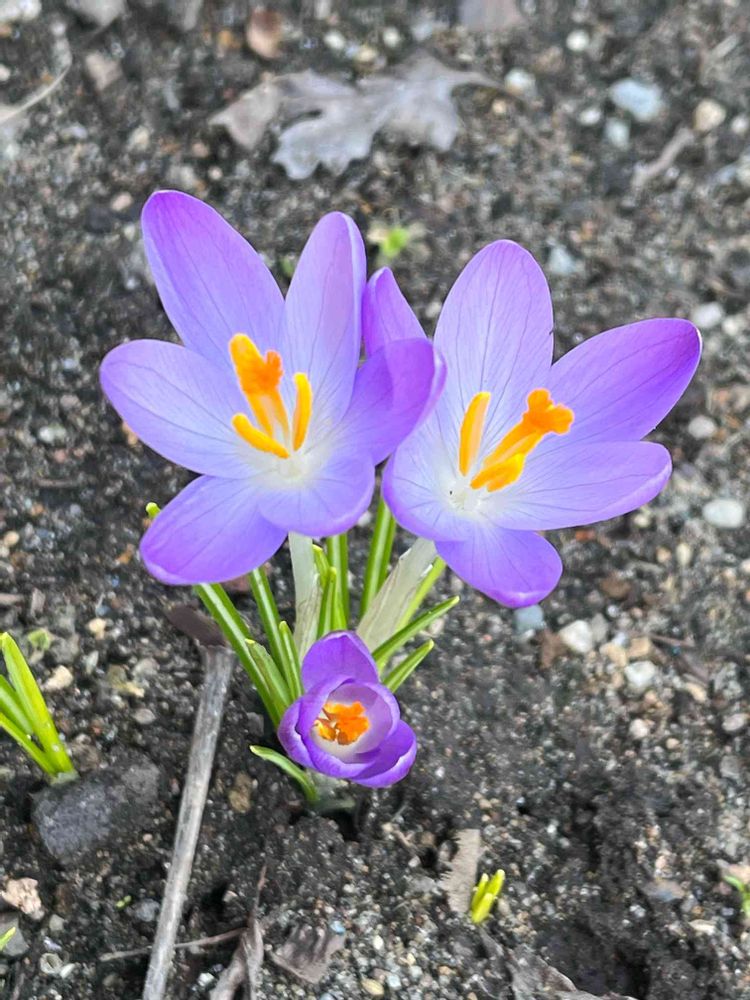 小さな庭に、紫のクロッカスが、可愛く咲いていました。これから、まだまだ咲きます。