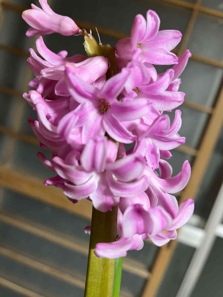 水耕栽培のヒヤシンス、何度も床に落ちててっぺんのお花が取れちゃった〜ぁ😂
