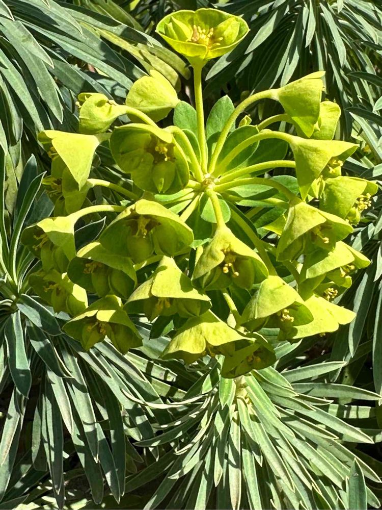 Euphorbia characias/Euphorbia. Euphorbiaceae. Malpighiales. Magnoliopsida. Tracheophyta Common name/Spurge Native Range/Southern Europe. Turkey Flower language/Moderate. Plain *Easily recognizable for its clusters of lime-green blooms in spring and summer. Photo 3/15 10:57am 2023