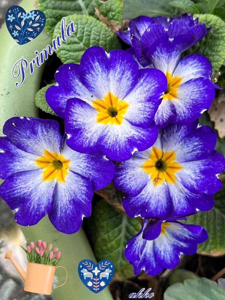 寄せ植えの中、青い花のプリムラジュリアン咲きました