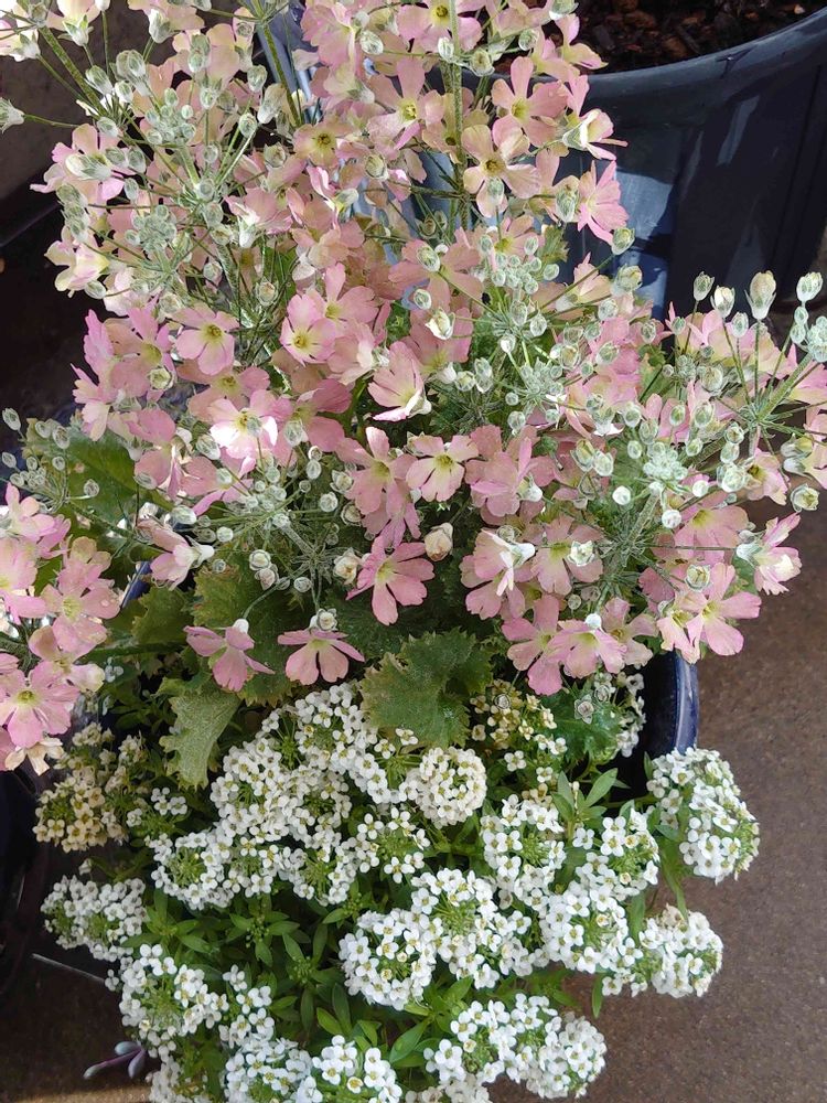 可愛いピンク色のウィンティーが満開になってきました(⁎˃ᴗ˂⁎)💖可愛くて毎朝見るのが楽しみです😊💕アリッサムもモリモリで可愛い(*^^*)💚✨