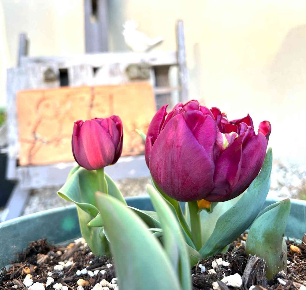 だから言わんこっちゃない💦って言われそうですが、丈の低いチューリップがもう咲いちゃいました。