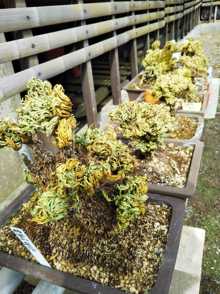 <地道投稿・自腹投稿・貰物投稿>晩秋からベランダ下に置いてました「岩ひば 数種」断食終わり11個並べました。🤳撮り地下水をたんまりやりました。