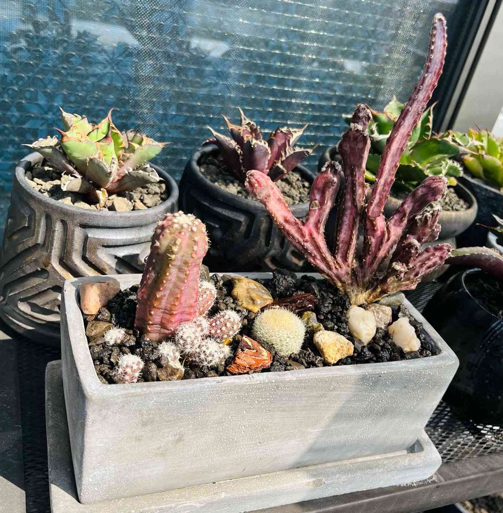 兼ねてよりスペースの有効活用の為に寄せ植えにしたかったサボテン達を植え込んでみました⚡️