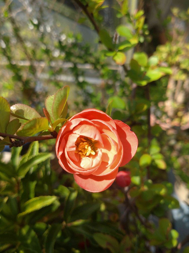 昨日咲いたボケとは別株で一緒に植えたのか植わっていたのか