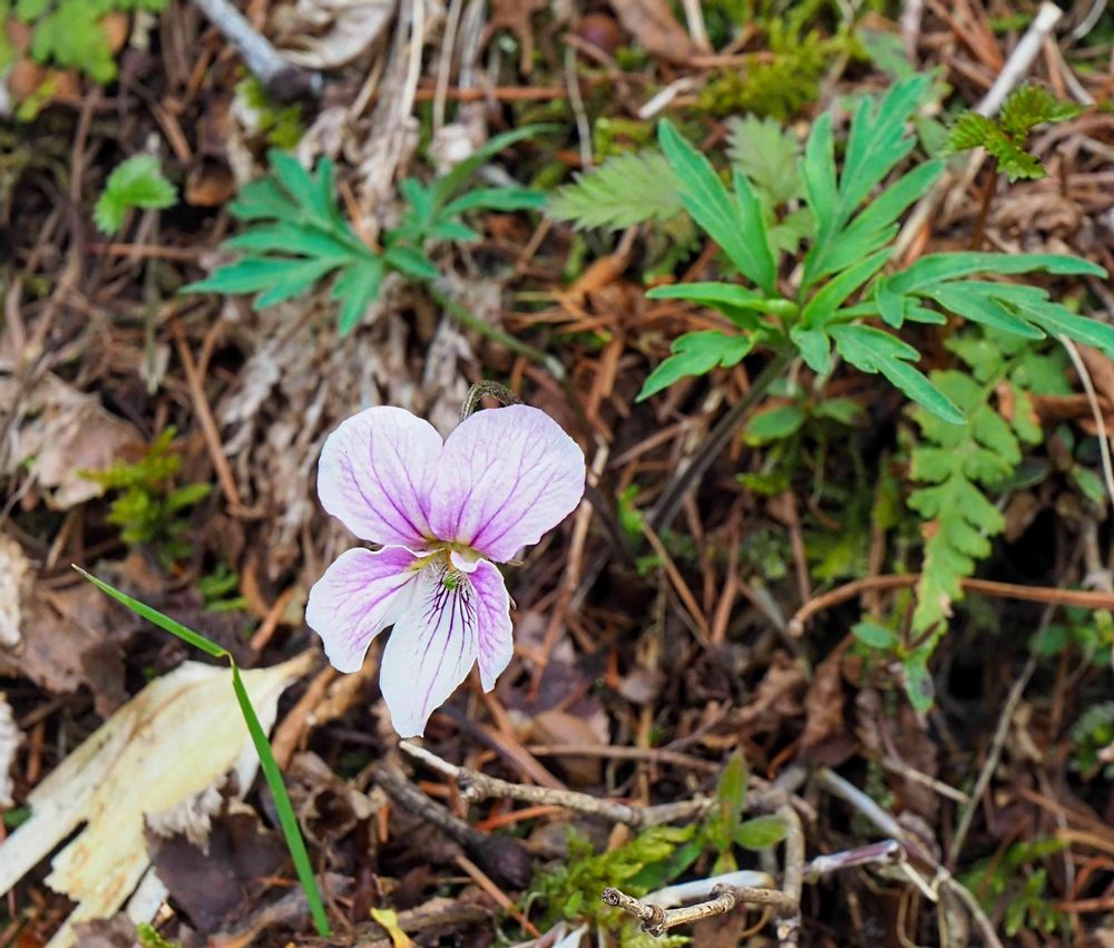 我が家に肥後菫を育てていたのですが、葉っぱがよく似た叡山スミレに初めて出会いました😍🎶。