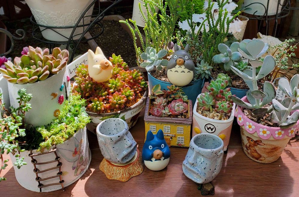 GS5年目になりました🤗 沢山の花ともさんが出来て私の知らないお花やサボテン🌵等々を見せて頂いて日々楽しんで癒されてます(*^^*) こういうサイトも初めてで、失礼な言い方をしていたらごめんなさいm(__)m 今は義父・義母も亡くなり去年実母も亡くなり(実父は16の時亡くなりました)子ども達も独立し(近くに居ますが独身)夫婦2人でのんびり自分達の趣味を楽しんでます🤗 GS初めて多肉、サボ🌵ちゃん、ソクモンちゃん、ソニエンくん、ペコちゃん、お散歩ちゃん、コポタン、トトロ、SNOOPY、ムーミン🐱🐶🦉🐸はにわ🗿等々を自分でネットで買いたくてメルカリやAmazonのやり方も覚えました〰️🤣 (何時も主人や息子に頼んでたけど、また買ったの~🤪って言われるの嫌なので🤭ホホホ) (因みに何時も主人に言っている言葉です🤭) ガチャも増えたな~🤔🤭 でもお出掛け先の楽しみも増えましたよ🤭 主人や息子もチキンとか見付けると買ってきてくれます🤗 断捨離の歳なのにね〰️🤣 いえいえ、今を楽しみましょう~🎵(O゚皿゚O)(^o^)v 無言フォロー😆👌❤️ですが一言頂けたら嬉しいです🥰 フォロワー増やしたいだけの方にはリフォローしません<(_ _*)> まだまだ🔰です。此れからも宜しくお願いいたしますm(_ _)m 2021年6月27日スタート