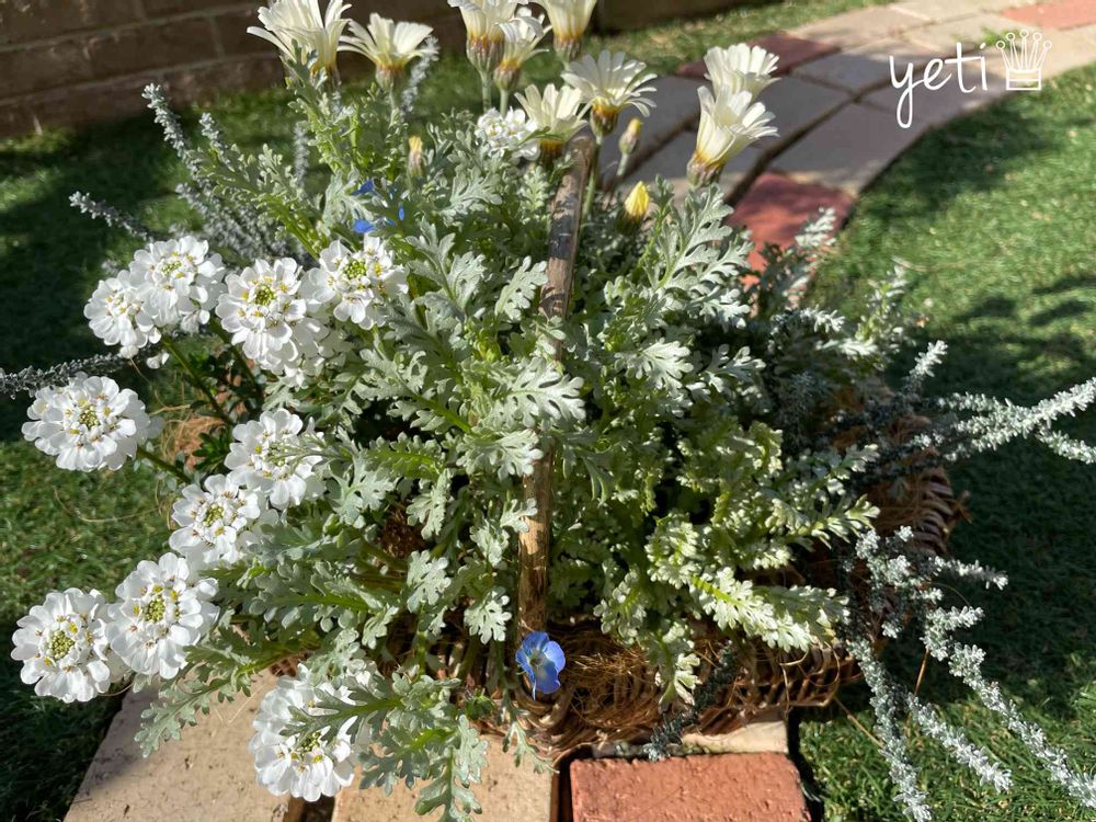 土谷ますみ先生の寄せ植えをコピーしようとして頑張ってみたんだけど・・・咲いているネモフィラが売ってなくて小さな苗を入れてみたら、なんだかモリモリきたけど、今だネモフィラは小さなお花しか咲かない😭なんか違うんですよねー😅