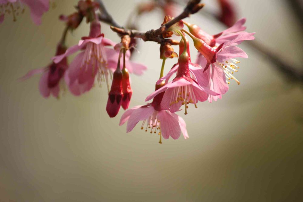 寒緋桜は開花しても花が半開きで、下向きに咲く特徴の桜なんですね。