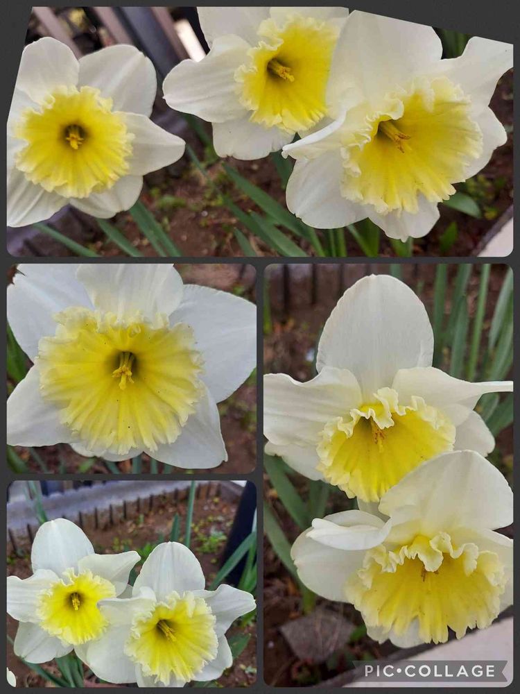 今日,うちの鉢植えの スイセン アイスフォーリス🌼が やっと たくさん 咲いて来ましたので、投稿しました❗️、ただ 写真🤳に詳しくない うたちゃんなので、iPadで パチャと 撮るだけなので、花弁や カップ咲きの