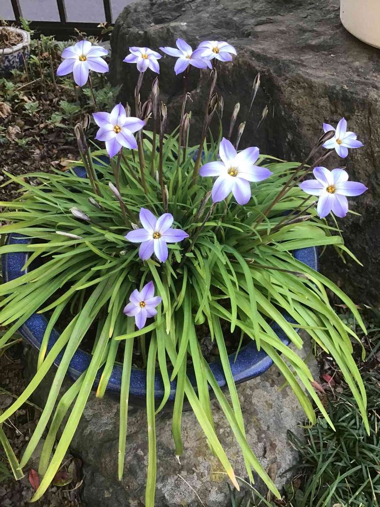 タダ 同然に 散って 生えて来るハナニラ 💙さんを ちょっと 大事に 扱ってみました、、,鉢植えなので、🪴 たまに 違う場所に 置いて鑑賞💕して、庭に アクセントを 添えてもらって 楽しんでいます〜❣️