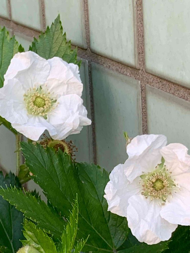 通勤途中に💚カジイチゴ💚の白い花が咲いているのを発見💕ふわふわ😊