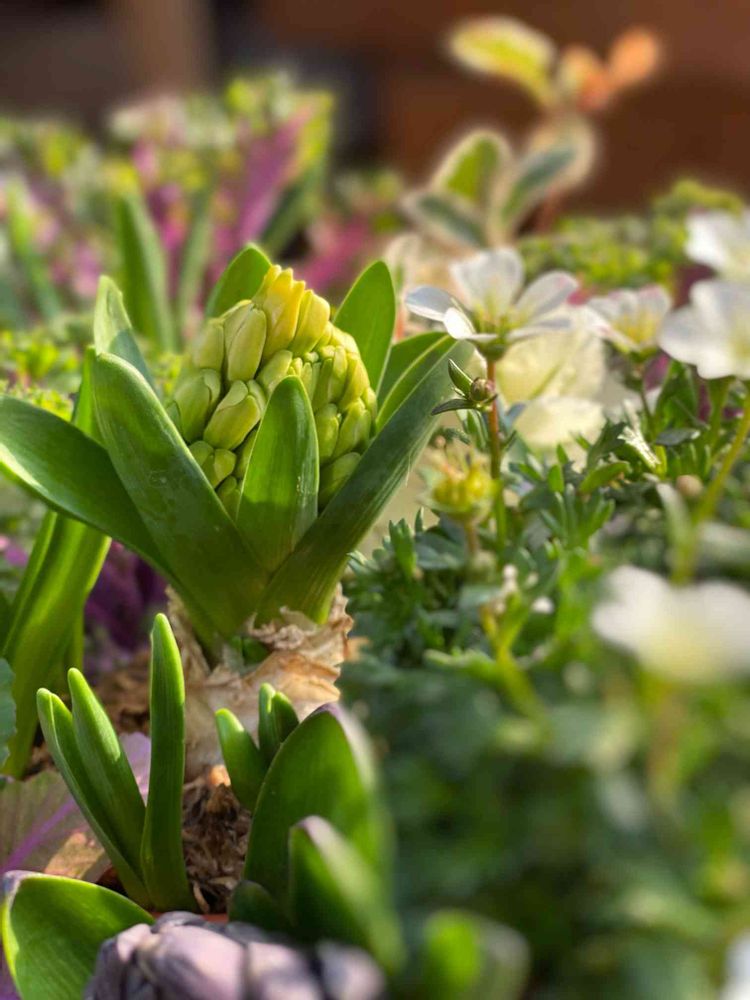 ヒヤシンス、ここのところの暖かさでグングン成長してます。