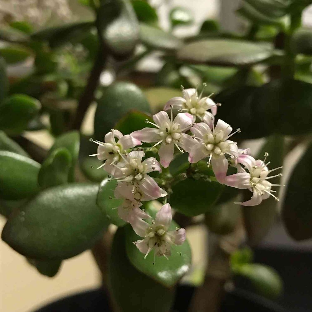 一月の中旬からお花が咲き始めた金のなる木。
