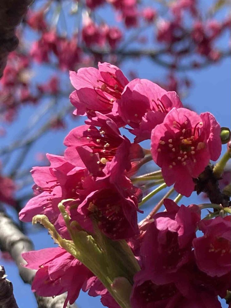 十二神社⛩の深山含笑を見に行ったら、根こそぎなくなっていた😂😭たまたま見にこられた方と、残念を共有して帰った。その帰り道、明るい緋寒桜に遭遇して少し元気になった!