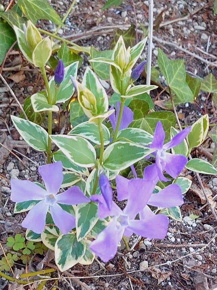 何日か前に出会った斑入りツルニチニチソウは濃い紫色もありましたが今回は優しい色合いでした😊💟💟💟