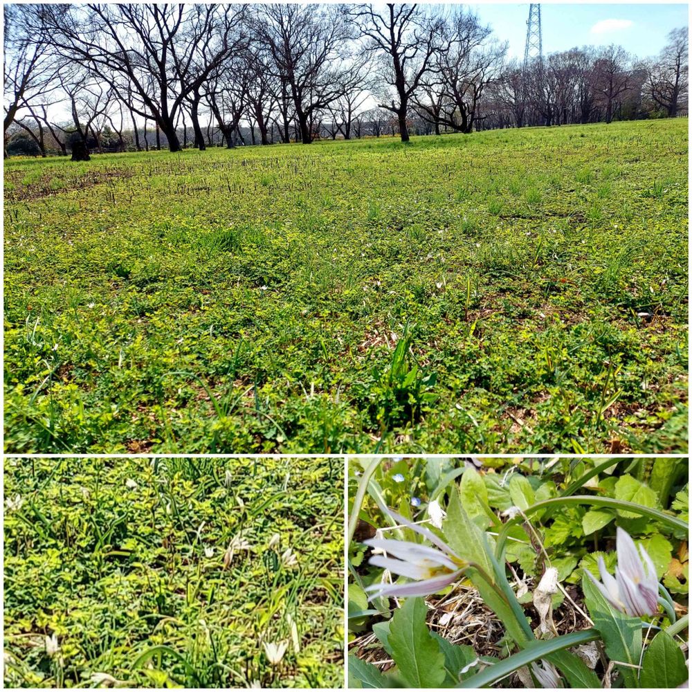 スミレ💜に出会った公園の中央にポツポツと白い蕾のお花がたくさん咲いていて👀‼️ロープが張ってあって近づけませんでしたが💦スプリングエフェメラル🧚♀️の仲間アマナ💓でした😍💕