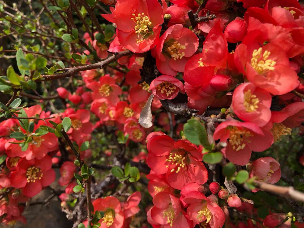 おはようございます😃実家のボケの花が満開です❤️