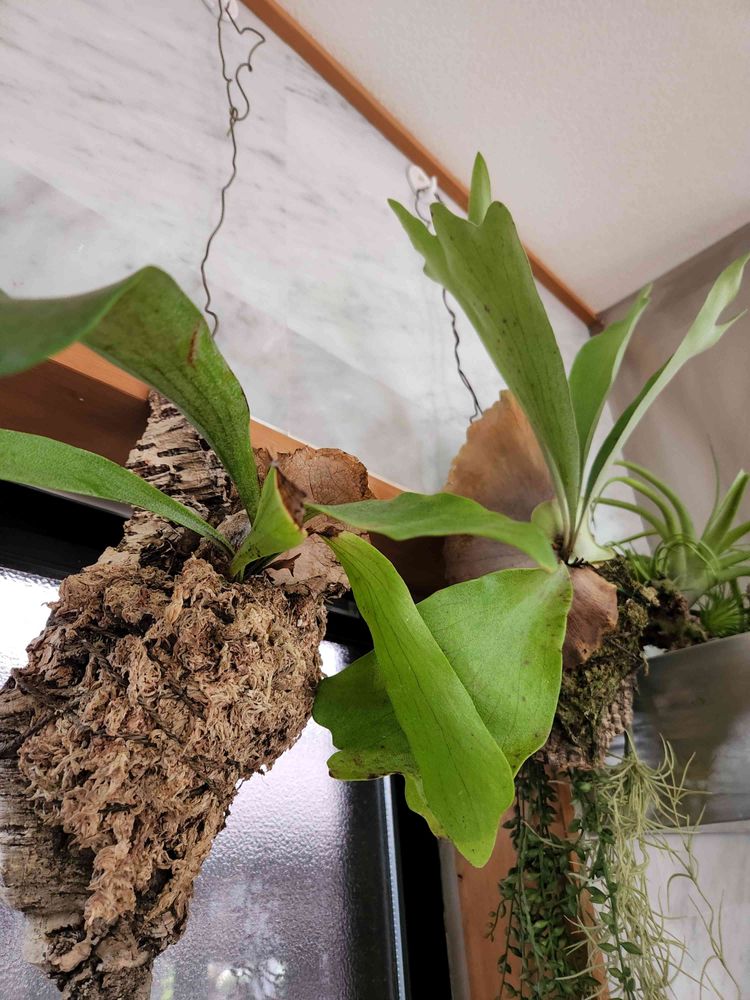 へご(❔)にミズゴケでまきぶら下げています。他の観葉植物は、ほとんど枯れたのに この子だけ 生きていてくれました。良い子、良い子。🌿🌿🌿🌿🌿 うれしい🎵😍🎵
