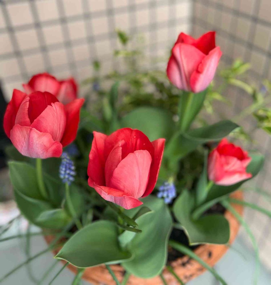 amianさんのバルコニー/ベランダ,チューリップとムスカリ♡,可愛いの投稿画像