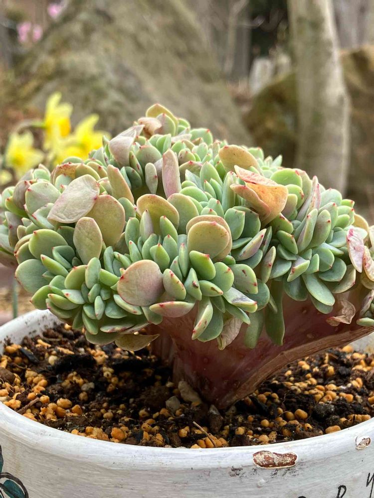 またまた大好き綴化さん💕上から見るとすでに丸々大きい👀土が乾かないと扇のような幹が腐りそうで怖い💦更におっきくするぞー٩( ᐛ )و ✩**・オー
