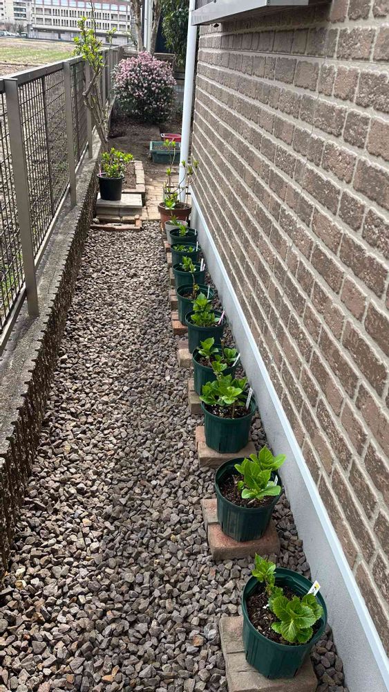 旦那の実家から来た紫陽花、自宅の地植えにしてある紫陽花、そして園芸店で購入したマジカルコーラル。家の東側に並べて配置してみました🪴🪴🪴