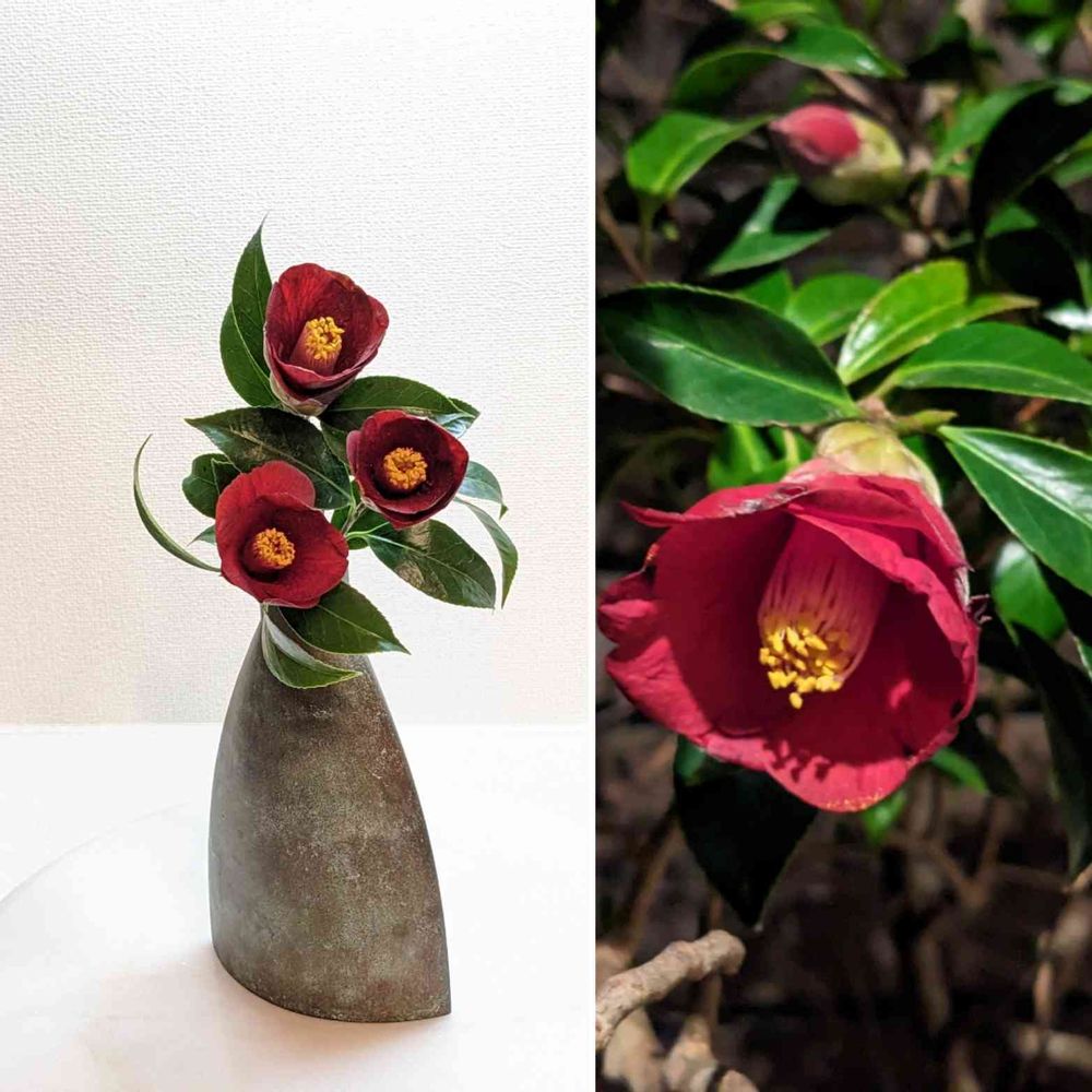 コチラの花器は20数年前~確か那須に向かう途中に立ち寄ったった作家さんの工房で購入しました…黒侘助を入れるためデシタ(^^)v🎶