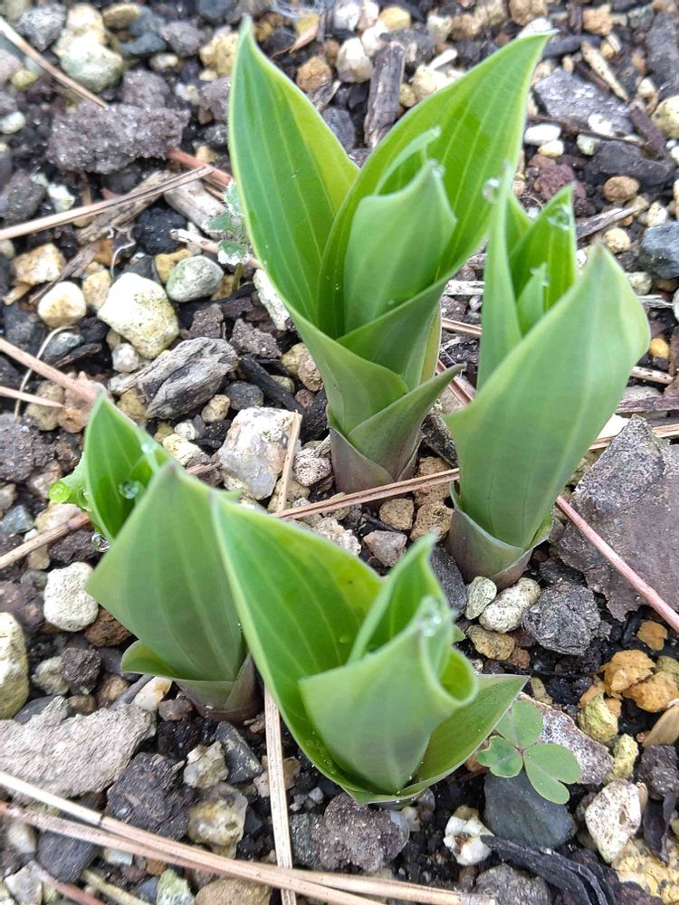 何者かに葉っぱを食べられ🐛🐌🕊️🐱あっという間に跡形もなくなってしまいました😭だから、宿根草とはいえ、もう根こそぎいかれたんだろう😞と諦めて半年。・・先日キラキラな芽を発見‼️😲‼️おや?このスジ見覚えある🧐?!もしや?もしや??もしや??!