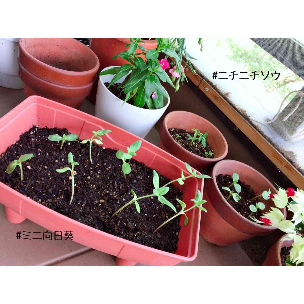 バルコニー/ベランダ,ニチニチソウ,ミニ向日葵の投稿画像