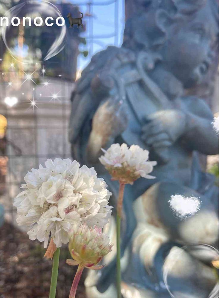おはよ~🐱 ののこ嬢可愛く撮れてますね~天使もベストです。お花もチョ~かわいい感じ👍