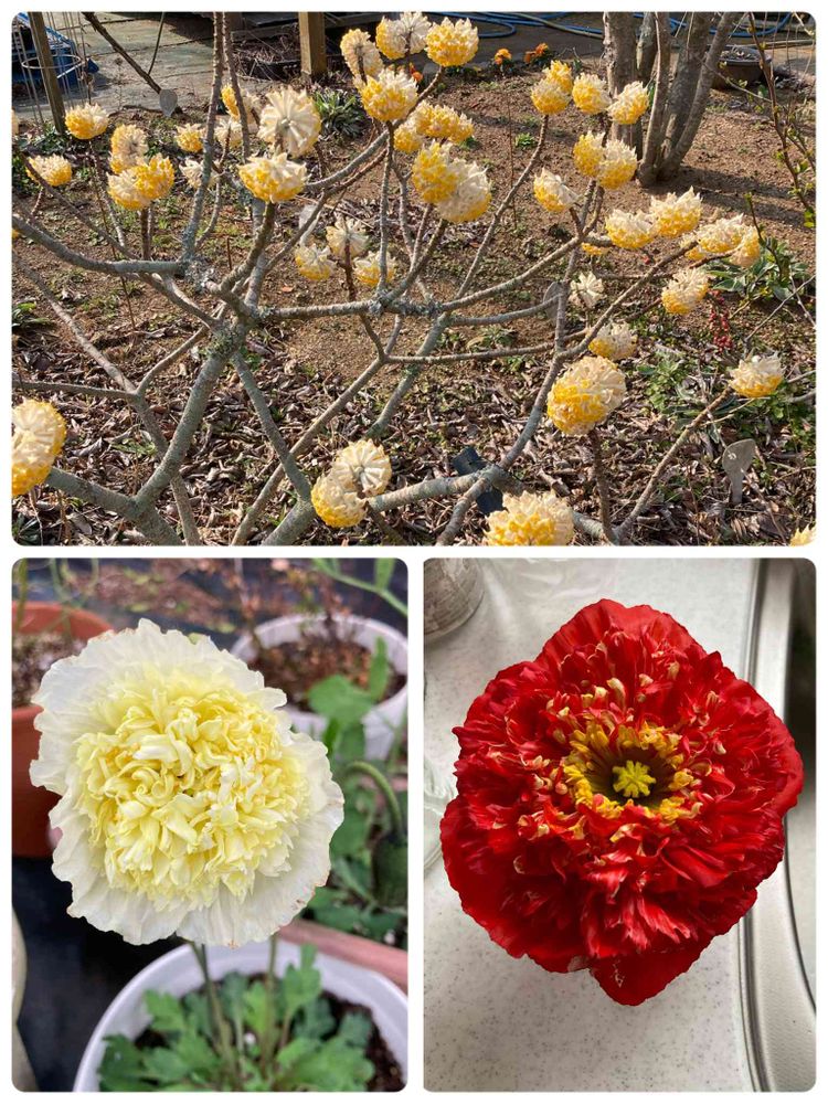 ミツマタ,八重咲きポピー,庭の花の投稿画像