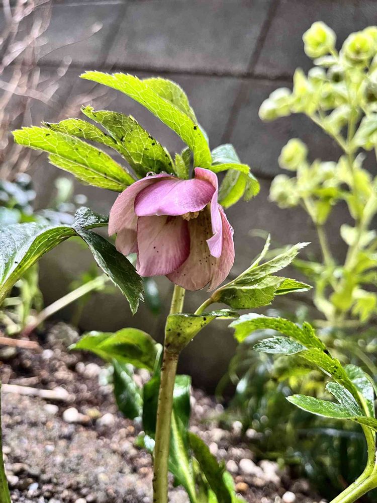 溢れ種から咲いたクリスマスローズ 随分前に植えたであろう親株は絶えてしまいましたが久々にこのタイプが見られて嬉しい😃