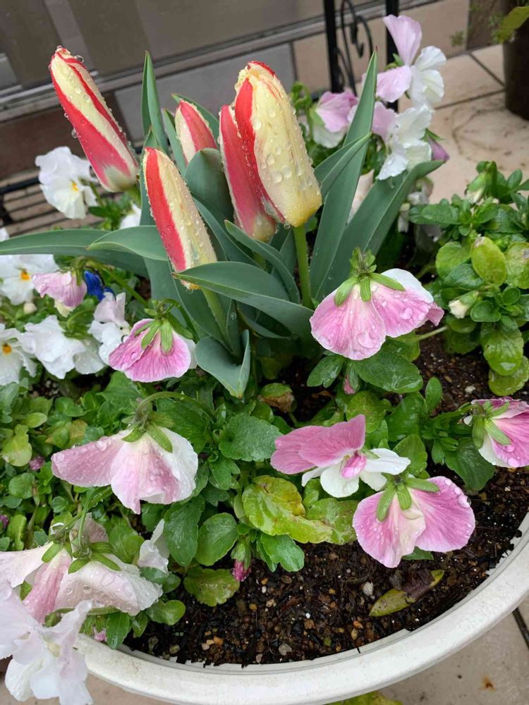 早咲きの🌷ビオラの中からでてました!そこのけそこのけとドヤ顔してますぞ