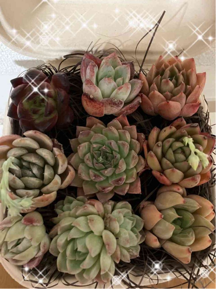先日同種類ですがエケベリア15株で1200円でしたが3株足りなくて連絡した所お詫びに7株も別の品種(3…種類)を送ってくださいました❣️