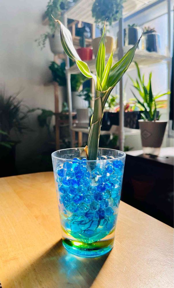 久しぶりにハイドロゼリーで仕上げてみたくて、ドラセナ・サンデリアーナ・ビクトリーが、丁度良さそうなので作ってみたら中々の綺麗さ✨ビクトリーの名の通りV字だし😊今迄、ことごとく枯らしてしまったので今度こそと、色々知識を検索しまくりです😅