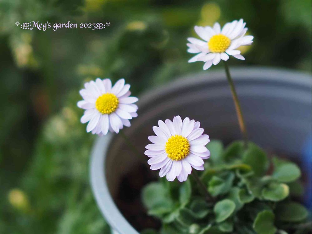 2年目を迎えた原種デージー アルムの空✨ 2年目を迎えてくれるなんて、思ってもいませんでした☺️ やっと3輪咲いてくれました💓