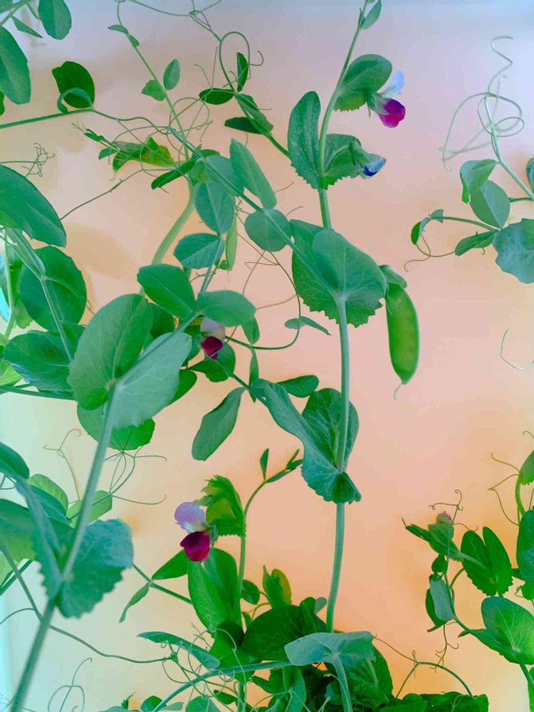 家庭菜園で育てているサヤエンドウ。花も楽しめます。