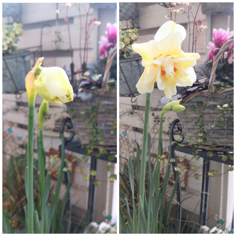 去年、フォロワーさんのところで八重咲き水仙を見て、綺麗だなぁって思って💕