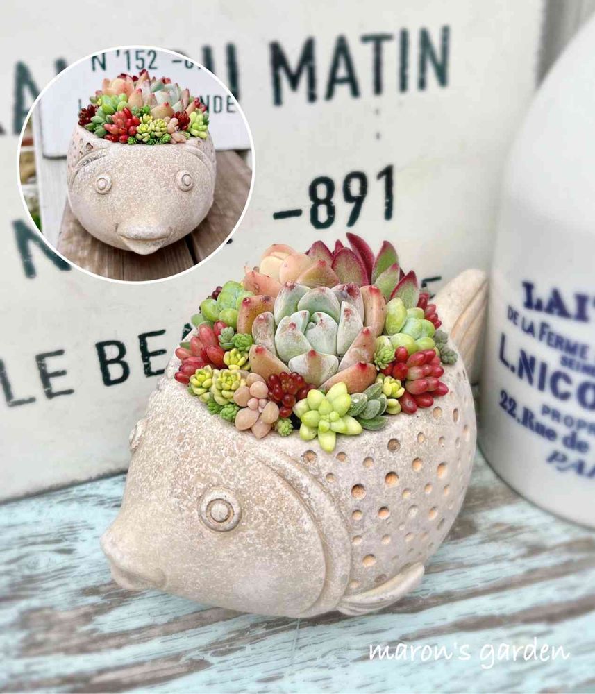 おとぼけ魚鉢いいわぁ‼️寄せ植えも素敵‼️