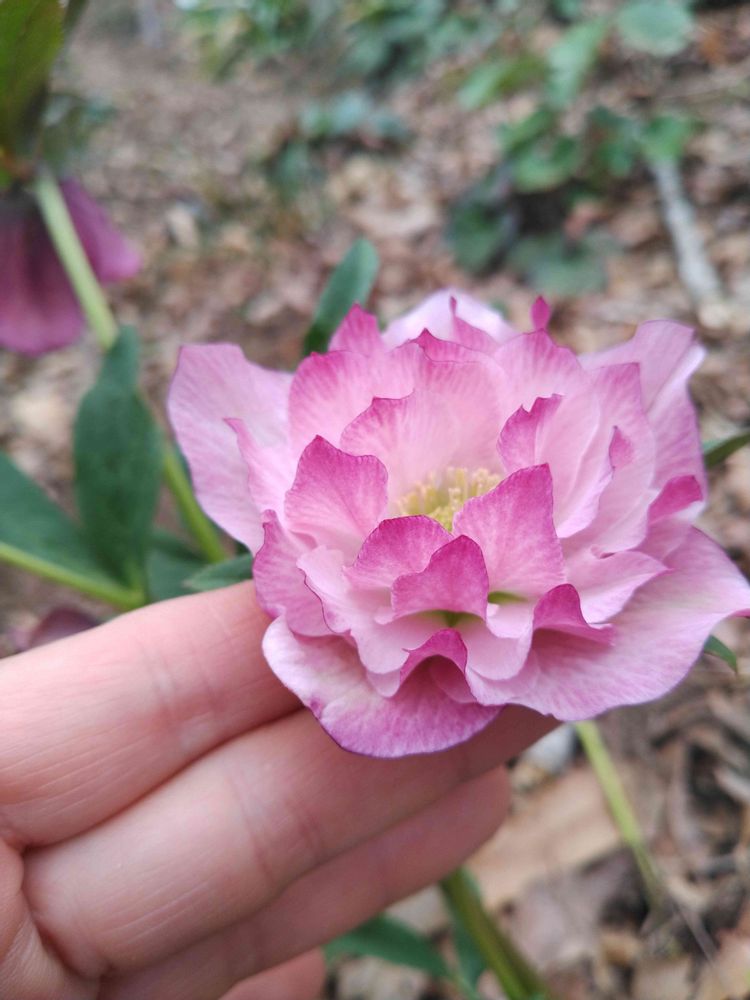 鬼ヤドカリさん。🤗 フリルのクリスマスローズ。しかも、可愛い色ですね。渋い色しかお目にかかったことがないので ビックリしてます。🥰♥️