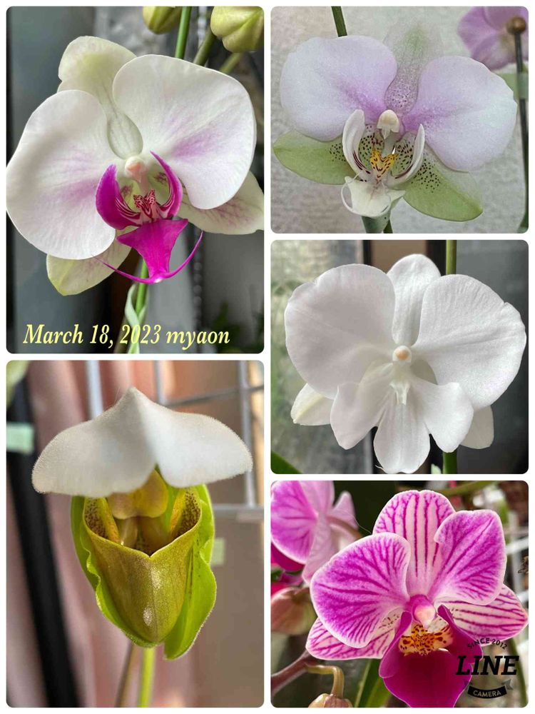 開花した胡蝶蘭&パフィオペディラム リーアナム(左下↙️)