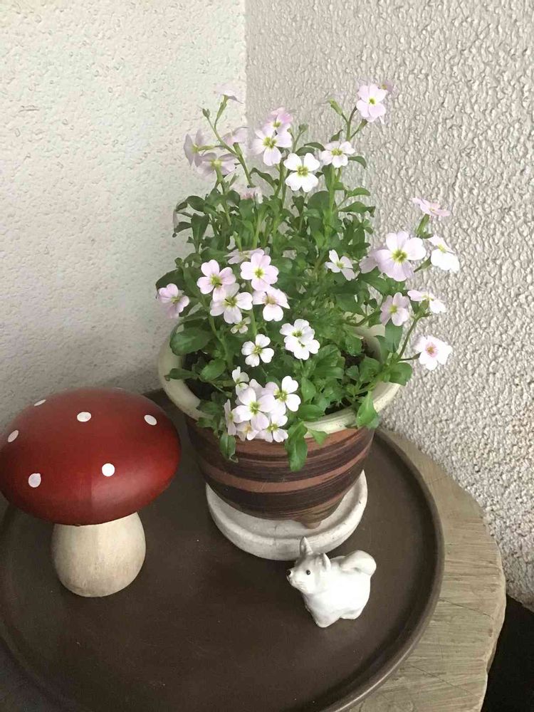 小さな庭,きのこの置物,バージニアストック※の投稿画像