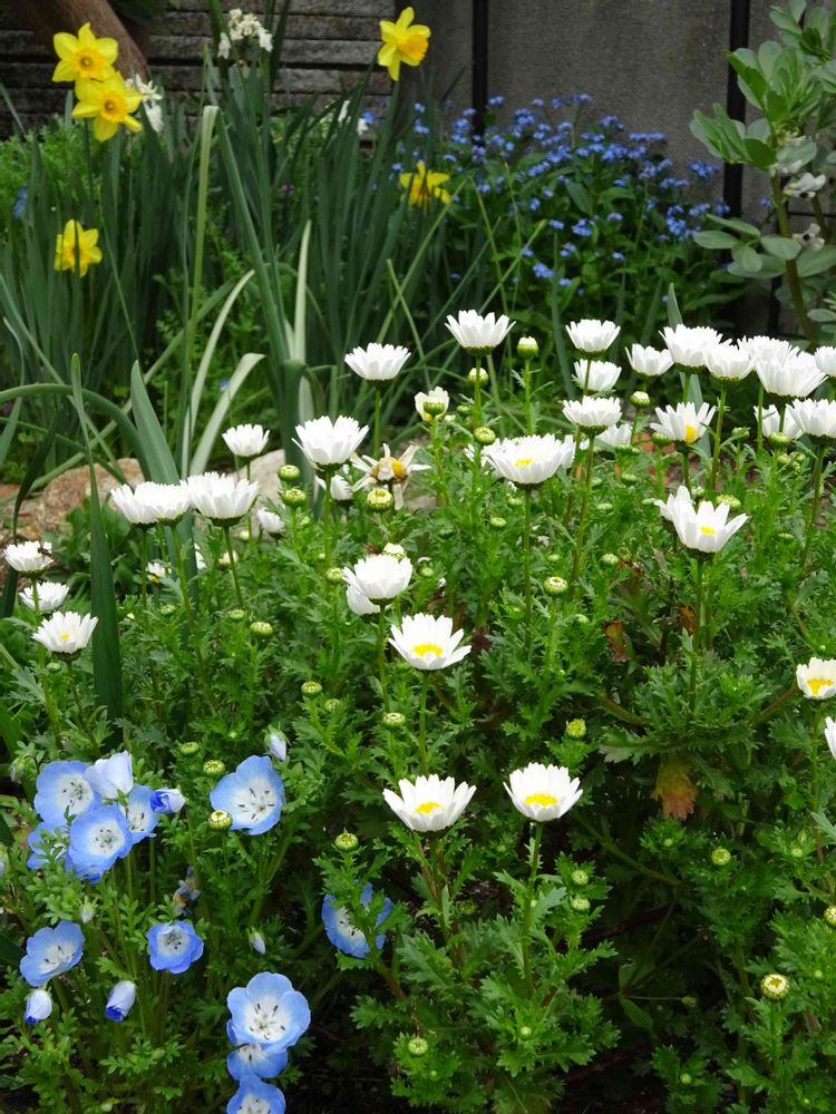 木の下に植わっていた黄水仙の周囲を花いっぱいにしたいと前々から思っていました。3年目にしてようやくイメージに近づいたかな?