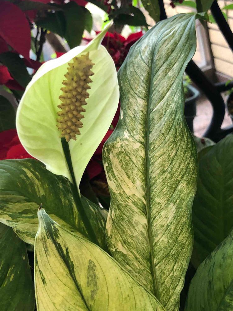 花びらに見える仏炎苞の真ん中にある棒の様なのが花です。